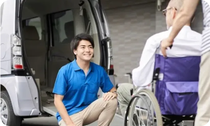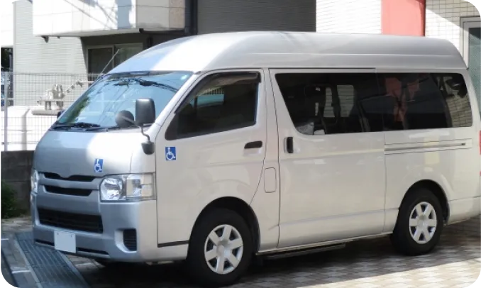 ご自宅やご希望の場所まで、スタッフが笑顔でお迎えに伺います。事業所についたら挨拶を兼ねて軽く朝礼をします。